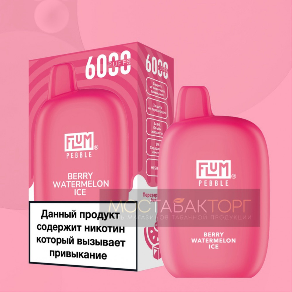 FLUM видыPebble FLUM вкусыЯгоды Арбуз Лёд FLUM количество в блоке10 шт